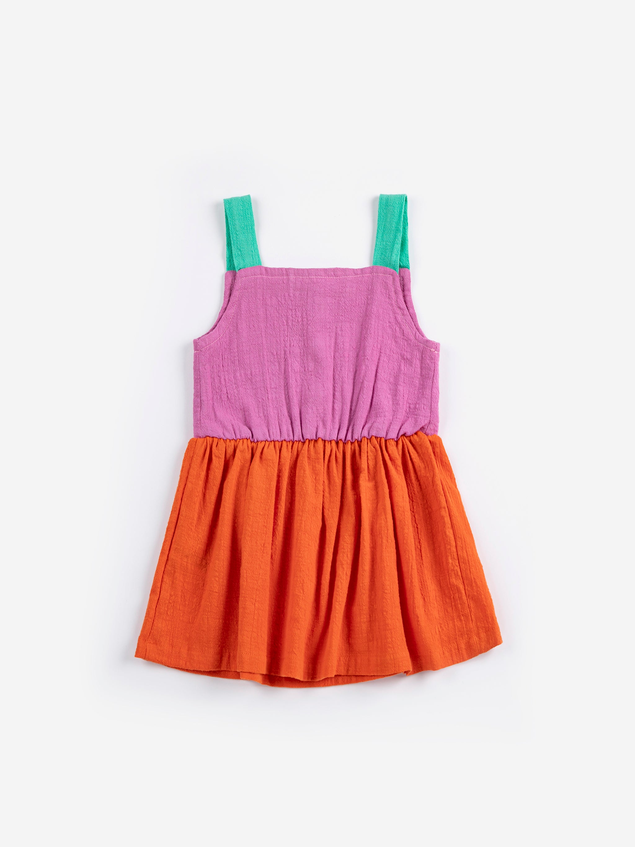 This stunning color block woven dress features a charming Pixel Daisy print in warm orange tones. Made from 100% organic cotton, it's soft, breathable, and special enough for photos yet comfy enough for everyday wear.