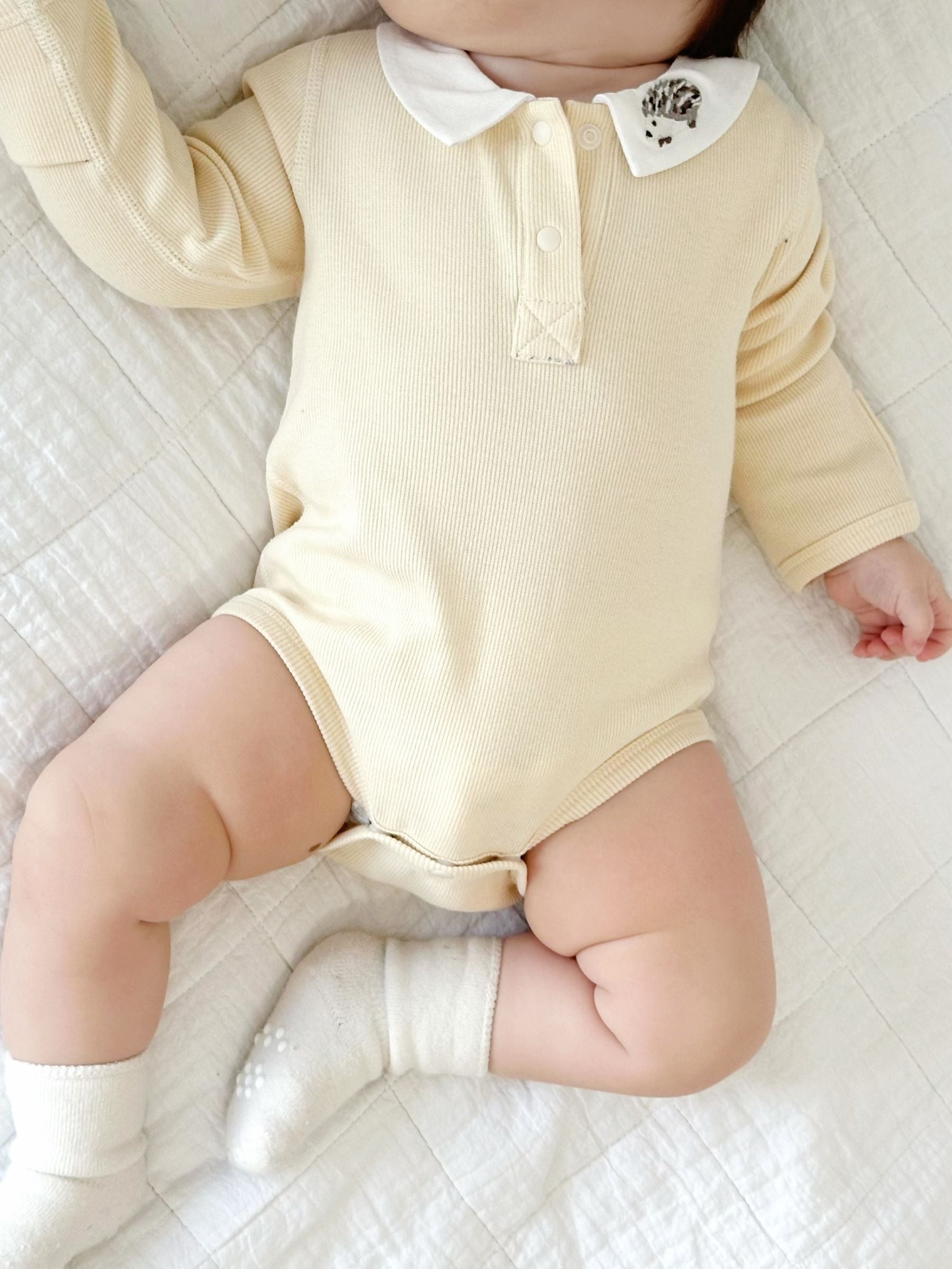 Long-sleeve Ribbed Collar Bodysuit - Hedgehog Embroidery