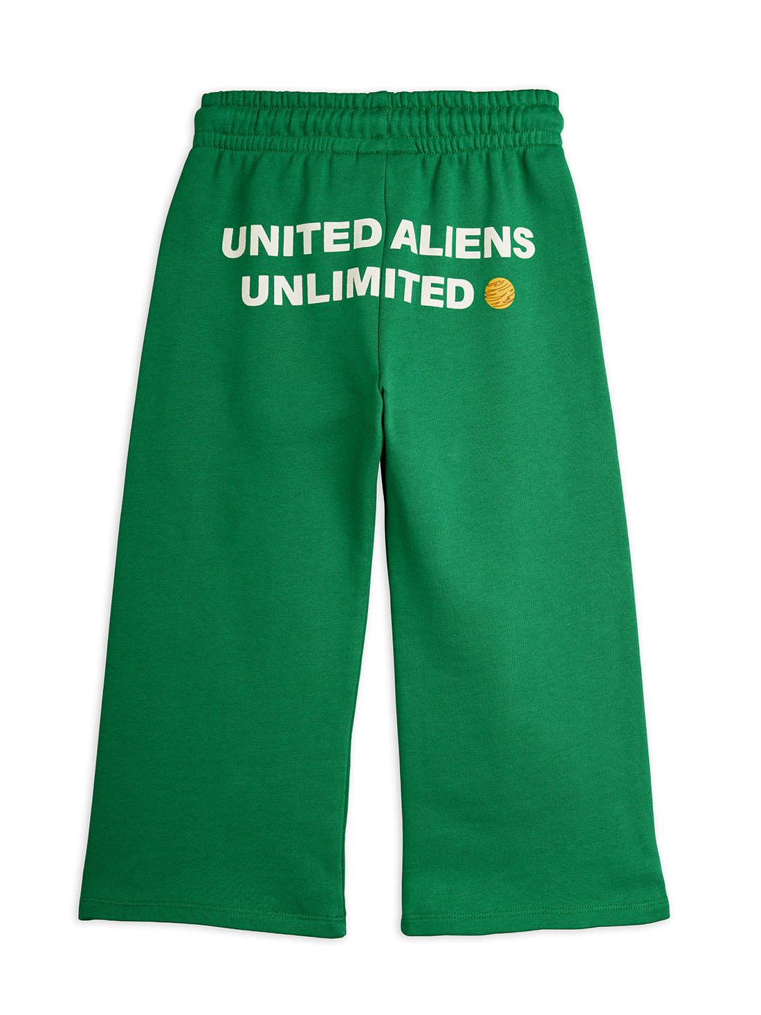 Sweatpants in 100% organic cotton. Wide-leg silhouette with clean hem and an elastic drawstring waistband. Finished with playful Travel Agency prints at the front and back for everyday comfort.