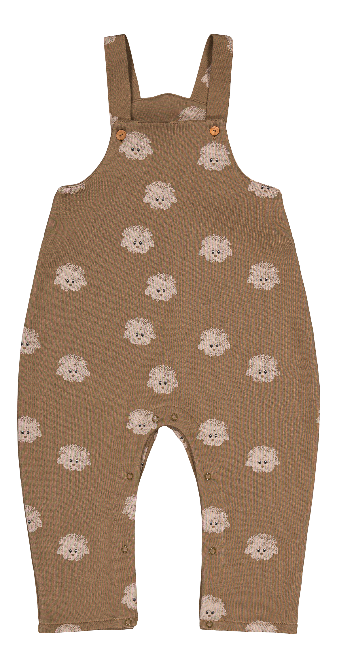 The Homer Overalls by Studio Bohème is a timeless fleece pants designed for little explorers. Crafted from 100% organic fleece cotton, this eco-friendly baby pants combines softness, durability, and style—making it a parent favorite for everyday wear. The mocha base with a doggy print creates a neutral yet playful look that pairs easily with cardigans or layering pieces.