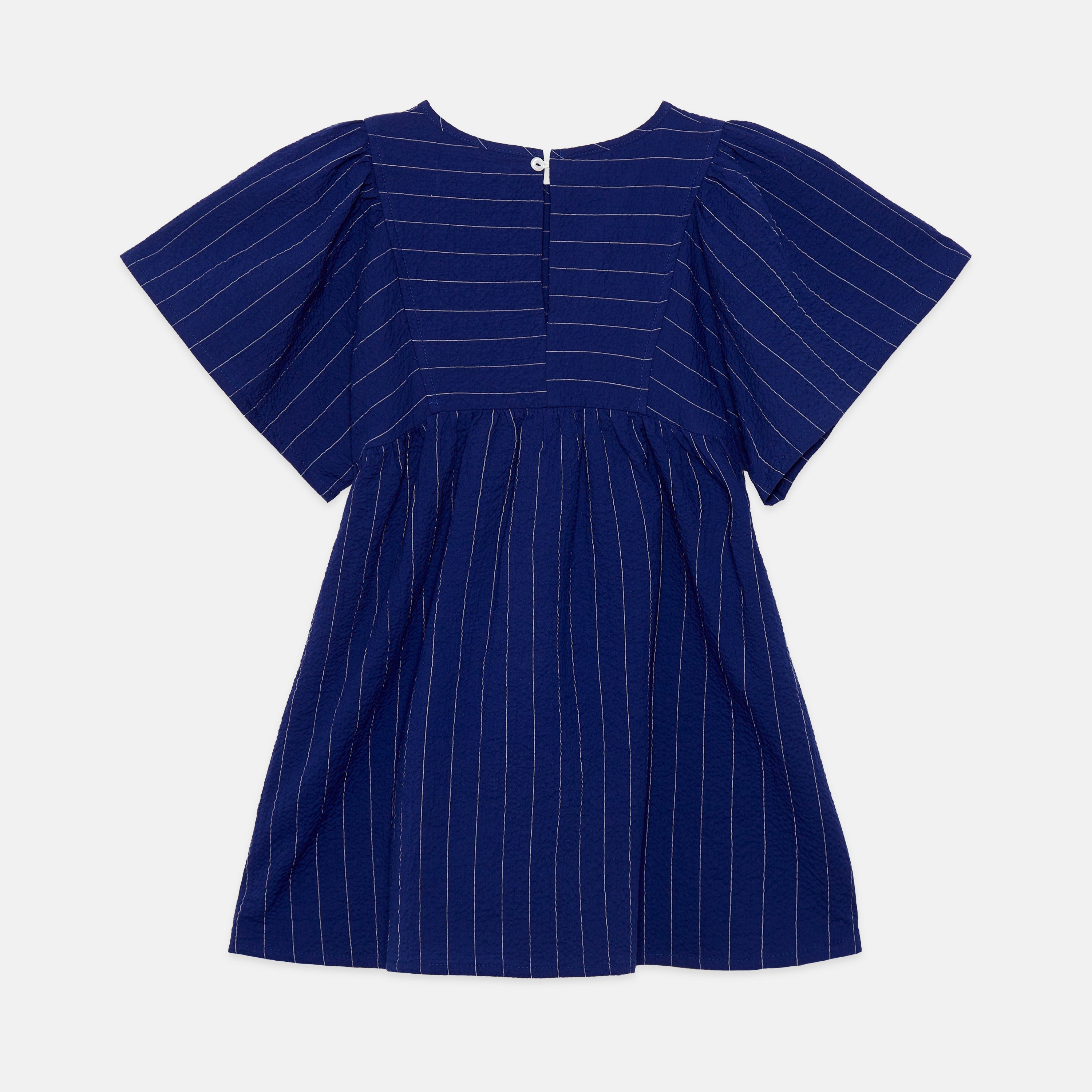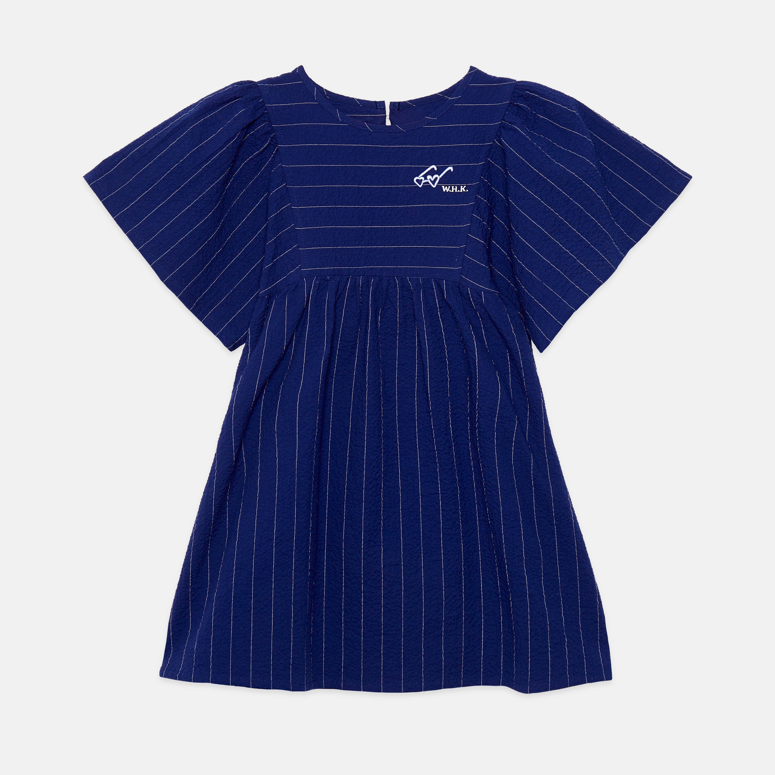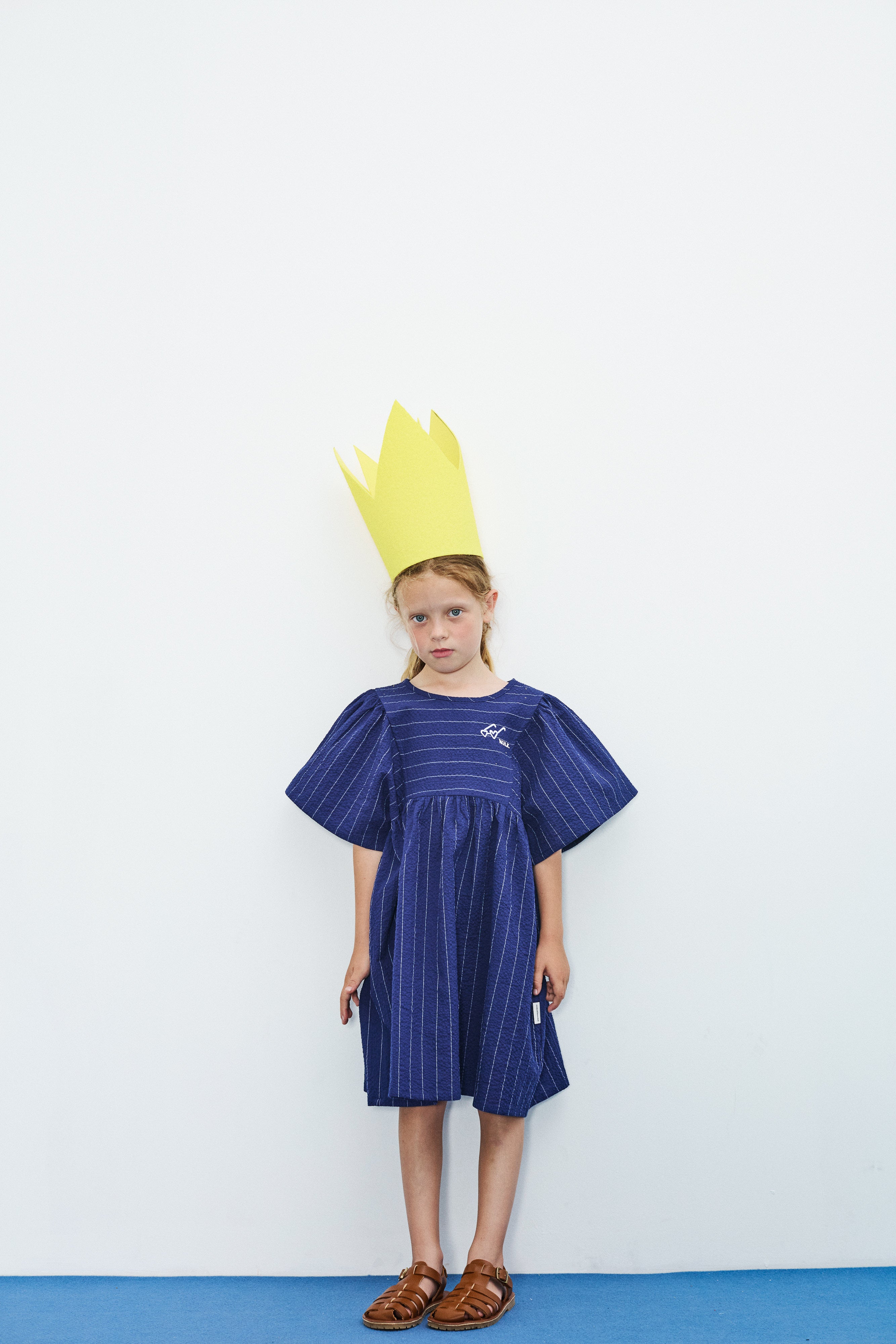 Imaginative heart-shaped glasses adorn butterflies dancing across this artistic organic cotton dress in ocean blue. Weekend House Kids showcases hand-drawn illustration magic with 100% GOTS-certified organic cotton, crafted in sun-soaked Barcelona. A dress that celebrates creativity and conscious style.