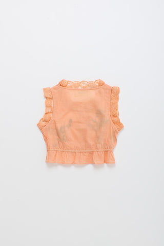 Birds Embroidered Ruffle Top Orange