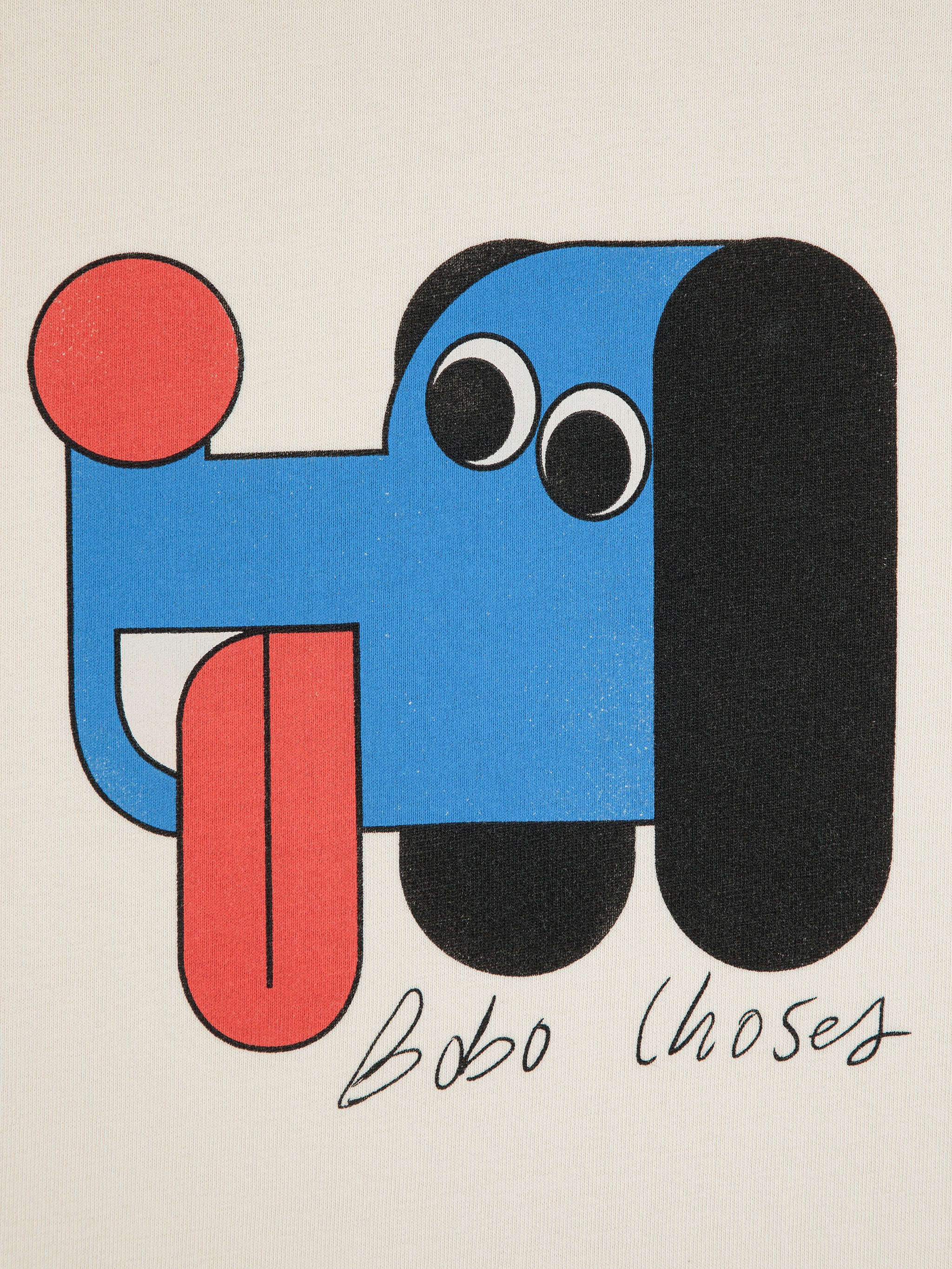 This Tshirt, crafted with care from organic materials, features a charming doggy mate jacquard design, perfect for eco-conscious families seeking children's clothing rental options.